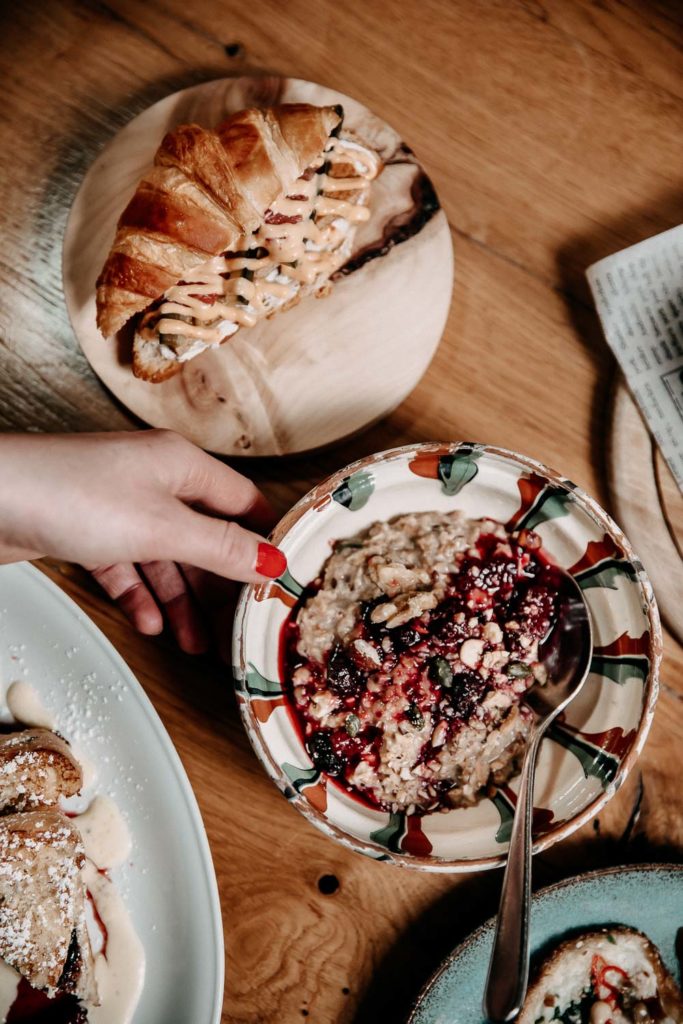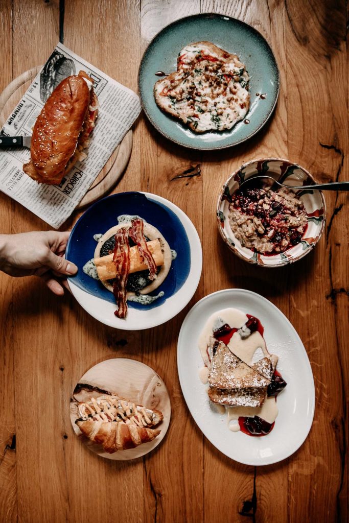 Unser Brunch ist etwas außergewöhnlich. Es gibt den wahrscheinlich den besten Gugelhupf mit Speck des Landes, den besten Bagel bis New York oder auch Filterkaffee wie damals von der Oma.